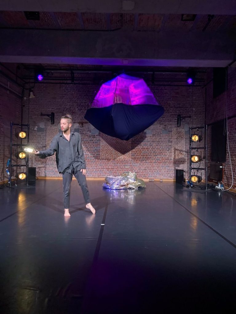 À travers ce solo à deux corps (interprété en alternance par Dounia et Florian) KêR présente une danse où scénographie textile, lumière et corps fusionnent pour amener les spectateur·ices de tout âge dans un imaginaire poétique. La tente réinterprétée comme objet central du dispositif scénique, devient tour à tour abri, peau, personnage et territoire en mouvement.