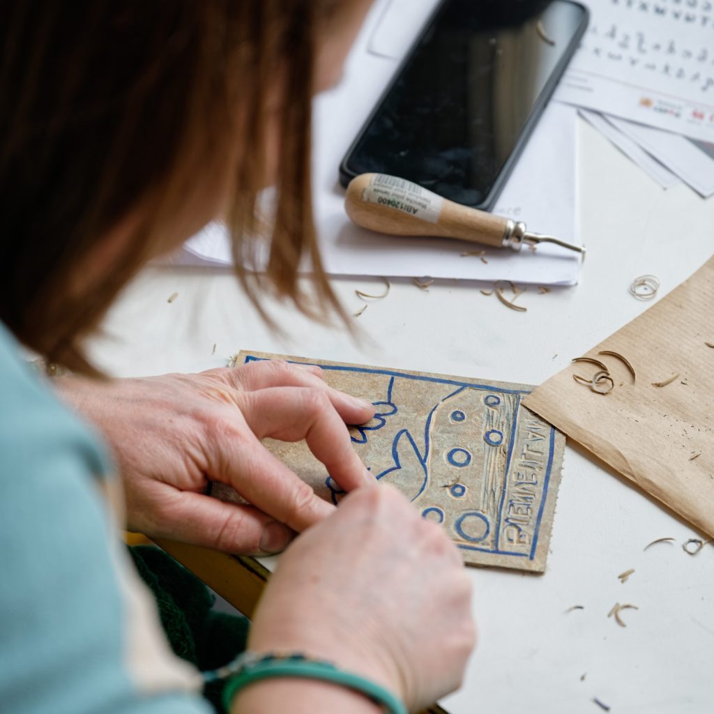 Initiation aux diverses techniques de production d’images reproductibles, comme la sérigraphie, la linogravure, la pointe sèche, le monotype ou la gravure sur TetraPak.